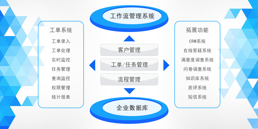 - 解决客服工作中有流程无管控的局面,由流程管理技能组实现对客服流程的监、管、控的功能,实现业务信息的实时跟踪与督办。