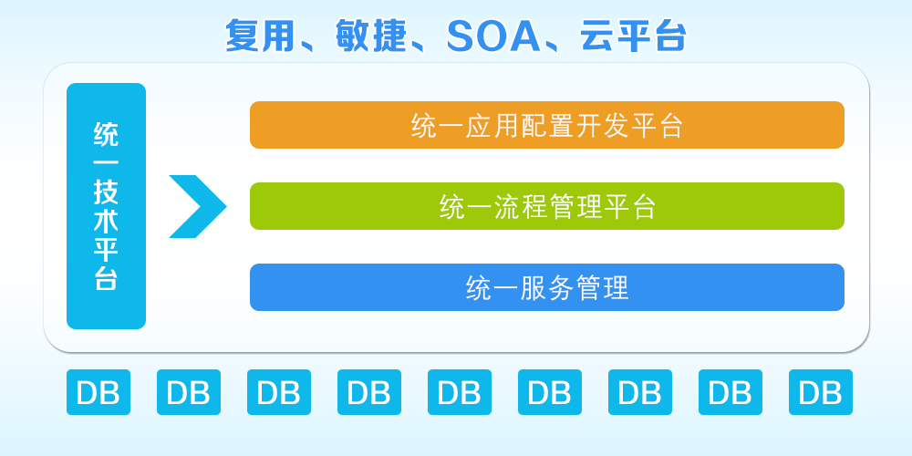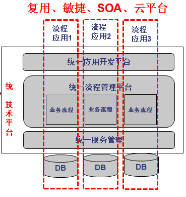 基于SOA的业务协同平台,从宏观的、整合的层次上规划应用系统建设,采用面向服务的体系架构、构件化的软件开发方式、应用集成和可定义和可监控的业务流程管理(BPM)等技术,统一考虑人员、信息、应用、业务流程各个层面的协同需求,支持信息资源的共享交换和利用,提供应用系统的通用体系架构和共性功能,并根据各领域特点整理提炼各类业务构件,为上层应用提供有效支撑。